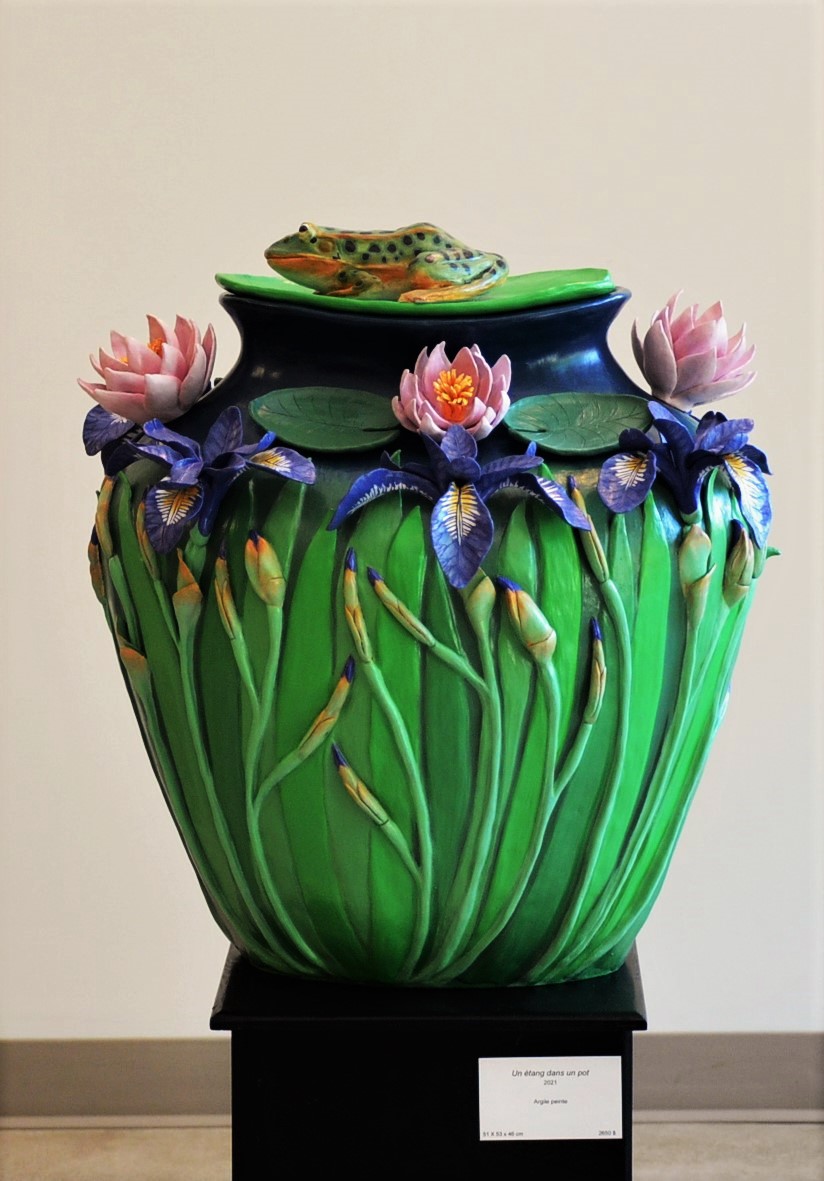 Du 30 août au 25 octobre 2025, à la Maison des Arts Saint-Faustin, j’ai participé à une exposition collective mettant de l’avant la sculpture et les oeuvres en grand format. J’y ai exposé une sculpture céramique intitulée Un étang dans un pot.